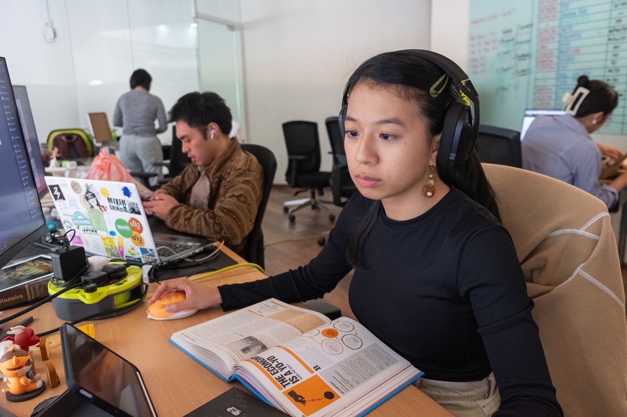 Iman going through The Economics book for layout inspiration
